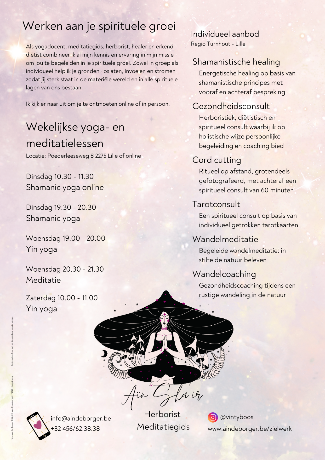 Sinds 2010 praktiseer ik regelmatig yoga en meditatie. In de periode van toen tot nu heb ik verschillende lerarenopleidingen doorlopen, onder andere in de Kundalini yoga en in de restorative yoga. Ik ben ook opgeleid in Shamanistische healingtechnieken bij het Centrum voor Siberisch Shamanisme in Etten-Leur NL. Bij dit centrum volg ik momenteel ook de jaaropleiding en de verschillende levels in Shamanistische dood. De transcendentale technieken van het Shamanisme verweef ik in mijn yogalessen, zodat ik een heel eigen stijl heb ontwikkeld in meditatie en yoga.